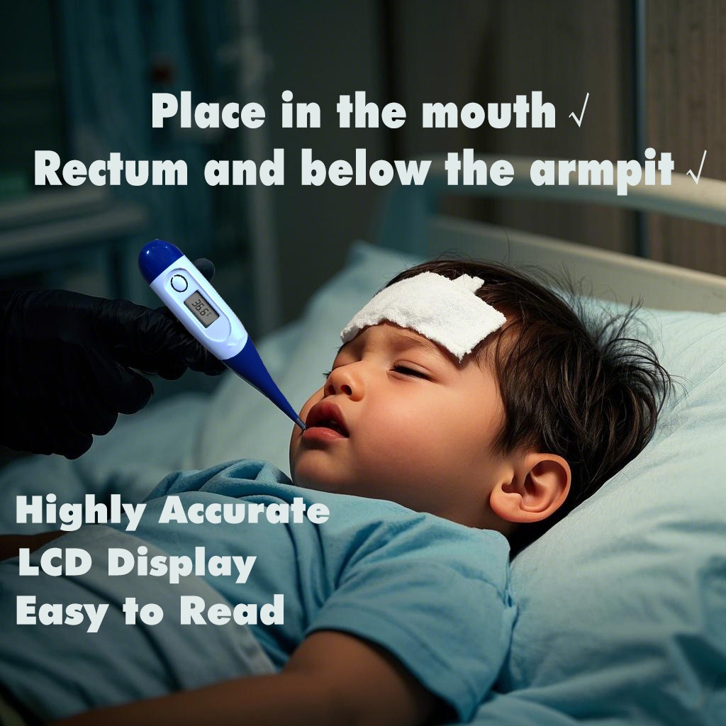 Dieses hochpräzise digitale Thermometer mit weicher Messspitze nutzt fortschrittliche Temperaturmesstechnik für schnelle und stabile Messwerte. Die flexible Sonde sorgt für hohen Tragekomfort und vermeidet unangenehme Berührungen, wie sie bei herkömmlichen starren Sonden auftreten können. Dadurch eignet es sich besonders für Säuglinge und empfindliche Personen. Quecksilberfrei, sicher und umweltfreundlich – das Produkt erfüllt die gängigen Hygienevorschriften für Haushalte. Es verfügt über praktische Funktionen wie ein übersichtliches Digitaldisplay, einen Signalton und eine automatische Abschaltfunktion. Dank seiner einfachen Bedienung und des geringen Gewichts eignet es sich für Haushalte, Schulen, medizinische Einrichtungen und viele weitere Anwendungsbereiche und bietet zuverlässigen Schutz bei der täglichen Körpertemperaturmessung.