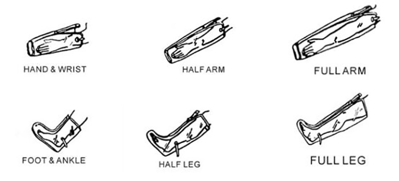1. Drei verschiedene Größen für den Arm: Hand & Handgelenk, halber Arm, ganzer Arm