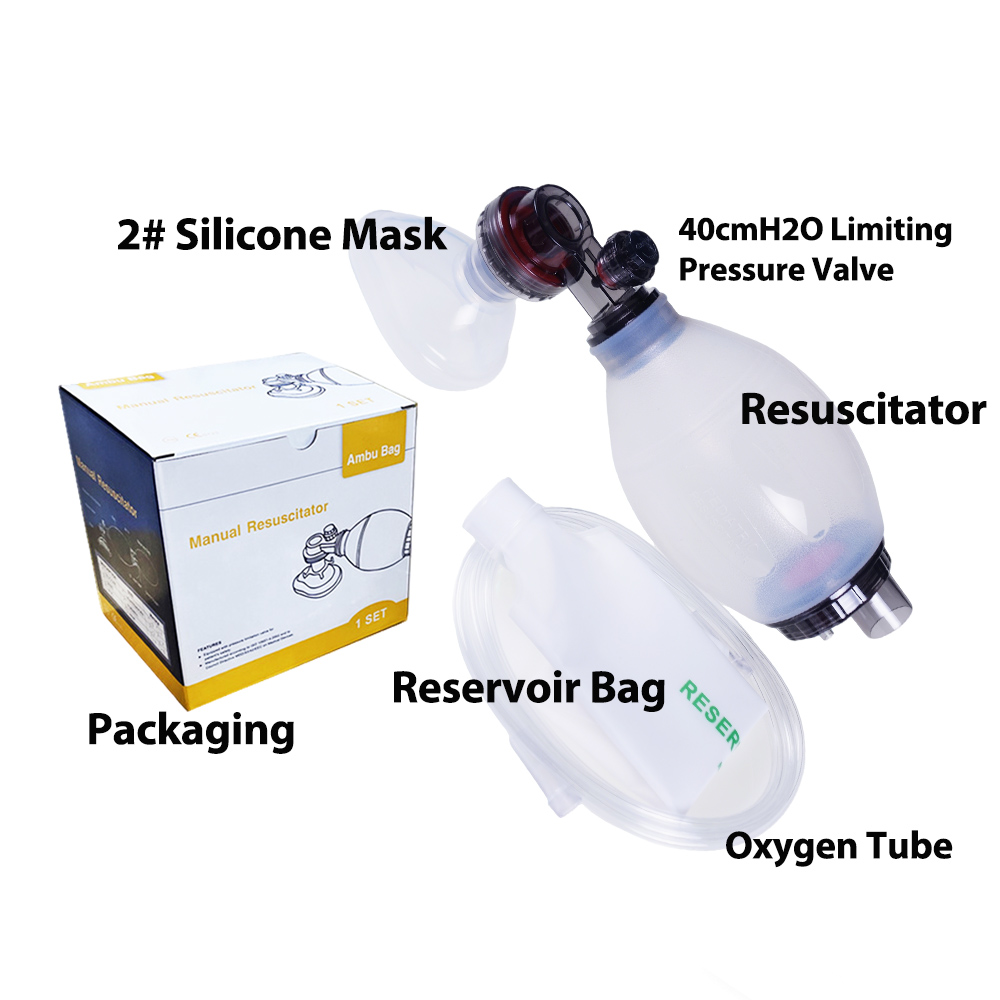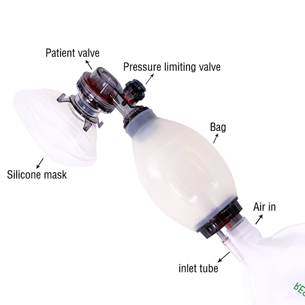 Der manuelle Beatmungsbeutel besteht hauptsächlich aus medizinischem Silikon, das sich durch hervorragende Flexibilität, Elastizität und Biokompatibilität auszeichnet. Er fühlt sich weich an und schmiegt sich eng an das Gesicht an, wodurch Druckstellen im Gesichtsbereich des Patienten reduziert werden.