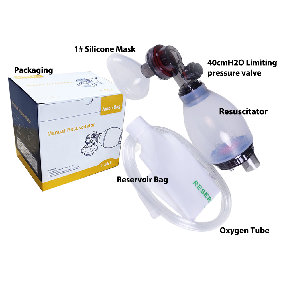Der manuelle Beatmungsbeutel besteht hauptsächlich aus medizinischem Silikon, das sich durch hervorragende Flexibilität, Elastizität und Biokompatibilität auszeichnet. Er fühlt sich weich an und schmiegt sich eng an das Gesicht an, wodurch Druckstellen im Gesichtsbereich des Patienten reduziert werden.