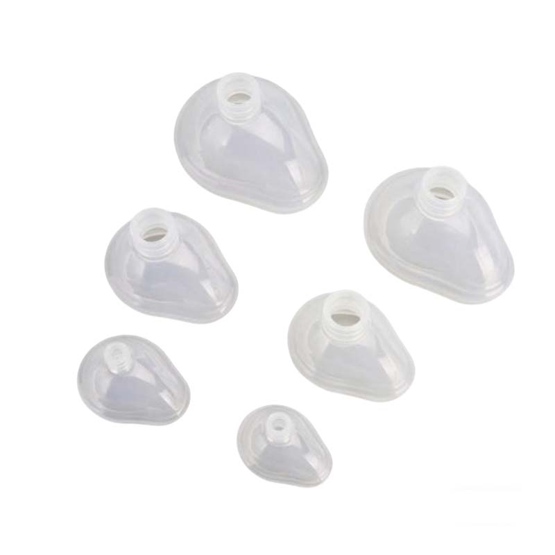 Medical reusable silicone anesthesia mask features an open cuff design, available in six sizes for general anesthesia, and is compatible with automatic ventilators and manual resuscitators. This reusable mask can be repeatedly autoclaved at 121°C, with a transparent PC shell for easy monitoring of bleeding, vomitus and spontaneous breathing. It is equipped with a soft silicone cushion for optimal facial fitting and built-in buttons for quick assembly after serialization. The mask is non-sterile, latex-free, and made with medical-grade silicone and PC materials for exceptional comfort during use.