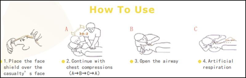 ✔Anwendungsbereich:Der CPR-Gesichtsschutz soll Schutz während der Herz-Lungen-Wiederbelebung bieten.