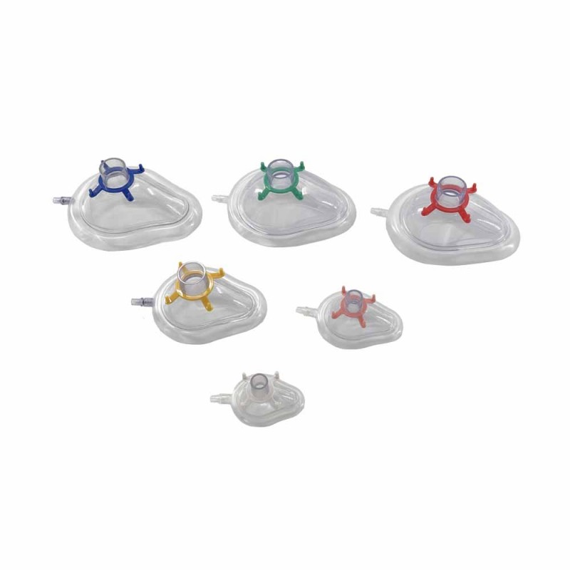 PVC anesthesia masks can be used in connection with medical equipment such as anesthetic apparatus, ventilators, oxygen machines,hyperbaric oxygen stores, inhaled painless delivery instruments and emergency breathing apparatus like Ambu bag/manual resuscitator.